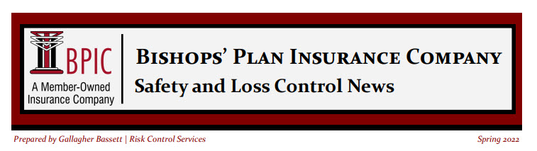 Quarterly the Risk Control Committee publishes a newsletter (English, Spanish) that is usually 6-8 pages in length. The process includes picking topics that Gallagher Bassett as content specialist writes up advisory articles relative to risk management and loss control. If there is a topic or issue you want BPIC to research and develop some content, email us at info@bpicmember.org Also, we encourage you to send these best practice articles out to your parishes, schools and ministries.